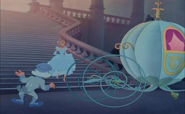 终于到了那一天,姐姐们和妈妈故意笑她,让她明白她永远也去不了。灰姑娘正哭着,姐姐们的马车也开走了。就在这时一个魔女出现了对她说,小姑娘你别哭了,我有办法哦,灰姑娘又笑了,因为她觉的有一丝的希望也可用用看。女巫开口就说,啪啦啪啦啊,这时南瓜变成了南瓜车,四只小老鼠分别变成了三匹马和一个马夫,灰姑娘也穿上华丽的衣服并穿上一双漂亮的水晶鞋。女魔让她在12点前回来,不然魔法会消失,灰姑娘谢过女魔就出发了,不过一会就来到了城堡,灰姑娘自己认为她来不及了,没想到刚来到城堡居然还没有开始。